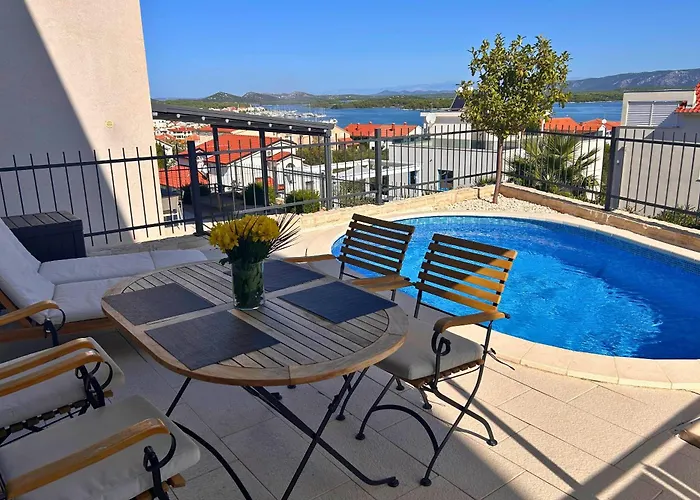 Muzej betinske drvene brodogradnje Museum is a 25-minute stroll from the 1-room La Perla Ita Apartment Murter, while Crkva Sv. Mihovila is situated nearby. The apartment features a terrace that overlooks the sea.